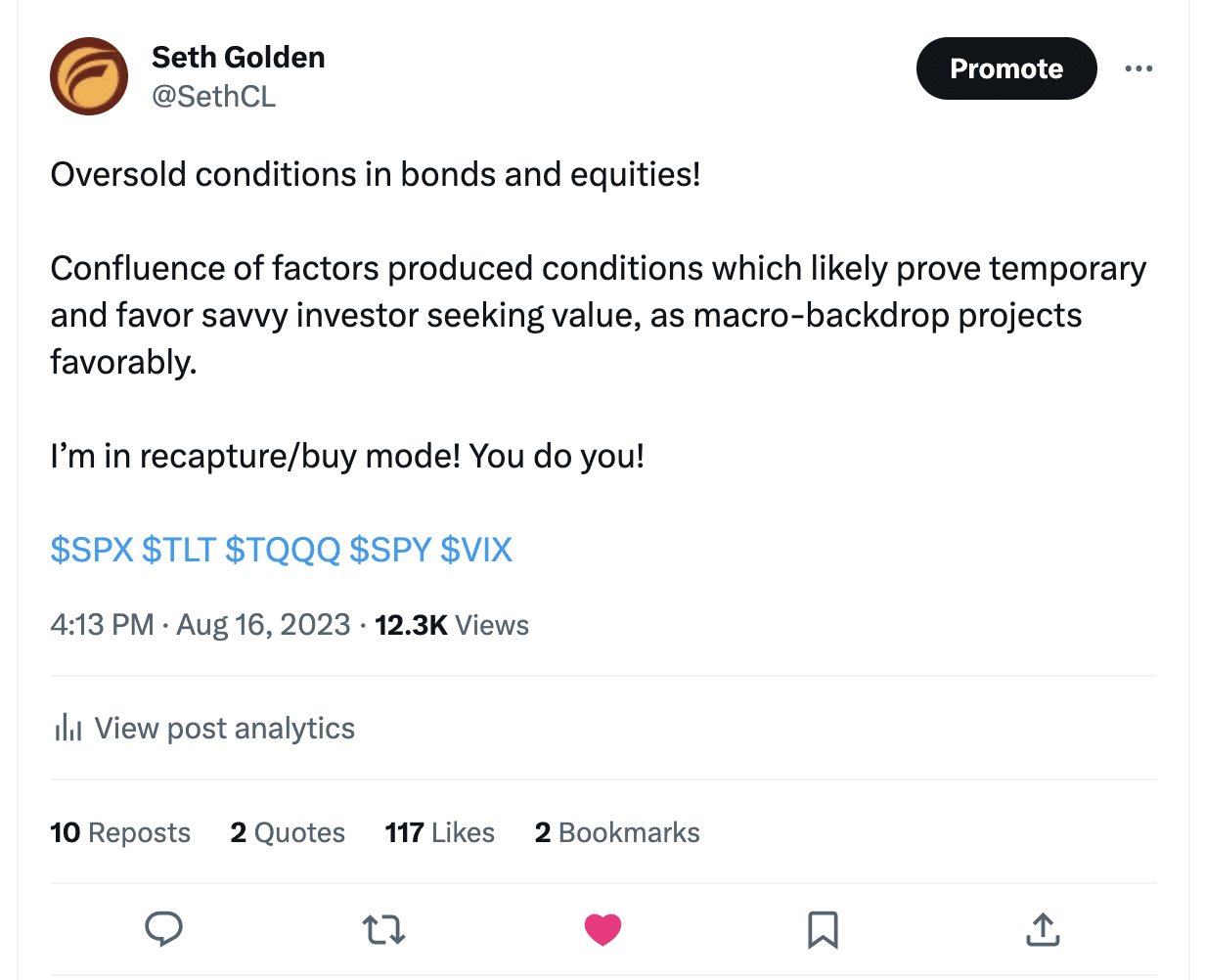 Just as I was encouraging Finom Group traders to take advantage of the -4.6% drop in the S&P 500 and -6%+ drop in the Nasdaq two weeks ago, in order to capture “good oversold” conditions and before this past week’s rally in the markets…
