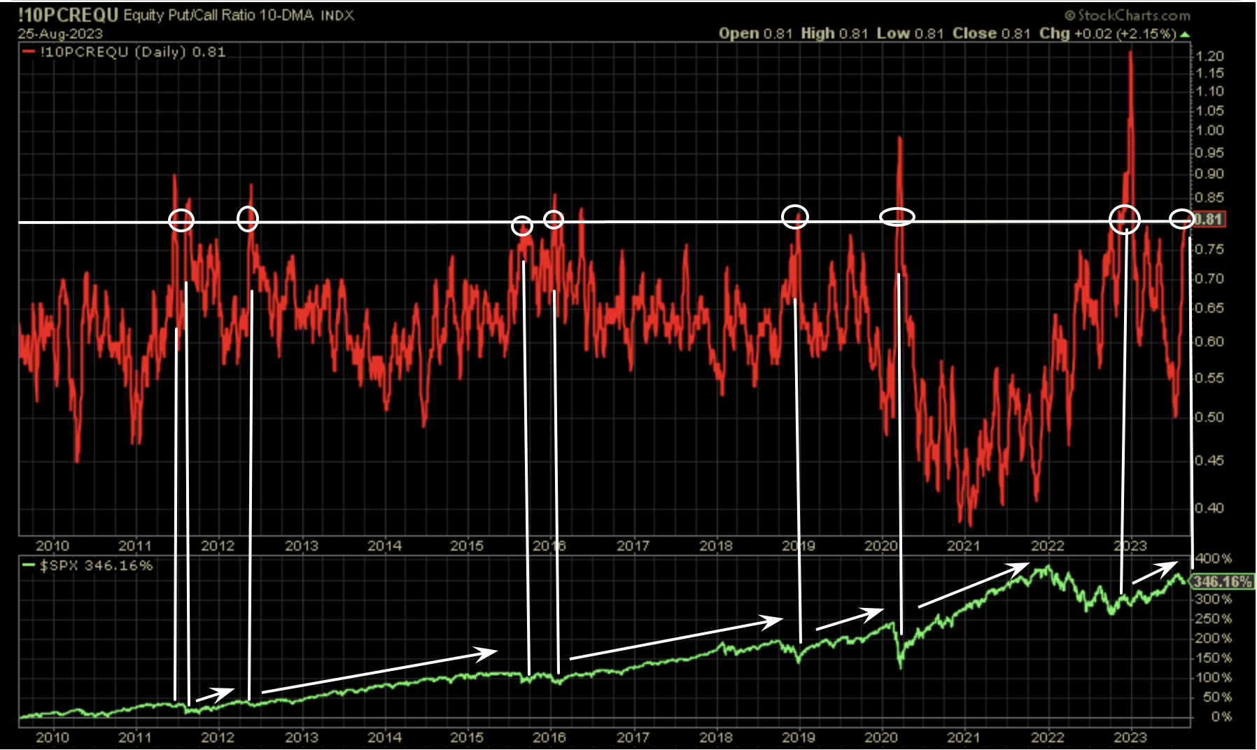 - For this reason, we like to use the 5-DMA (blue line) to recognize whether or not the spike in the P/C Ratio is just a spike or has been building momentum.