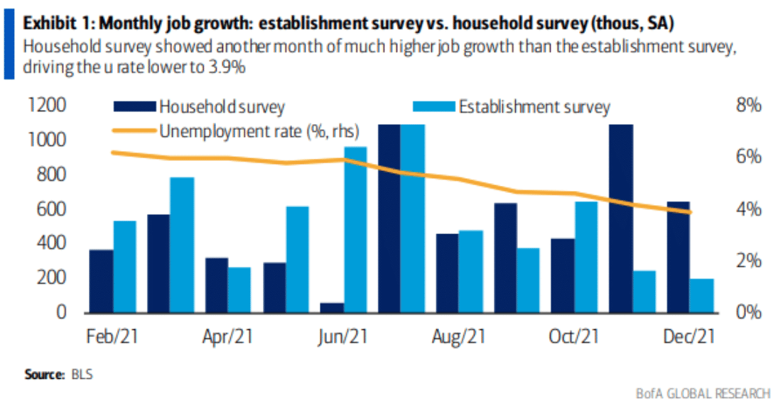 A survey of households shows that 651,000 people found jobs in December after 1.1 million had done so in November. That’s 1.74 million jobs, almost 4X as many as the combined headline numbers for the past 2 months.
