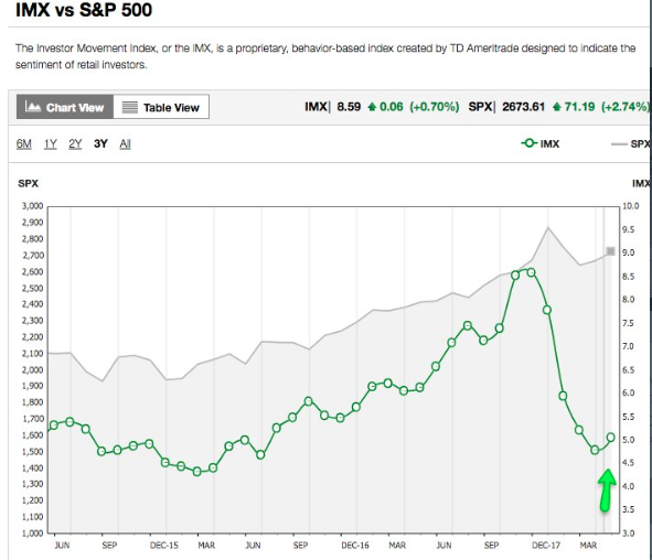 In addition to the insights from the IRRA, the latest from TD Ameritrade’s Investor Movement Index (IMX) proved positive for the markets in May. The IMX increased for the first time in 5 months, increasing to 5.06, or 5.64% during the period.