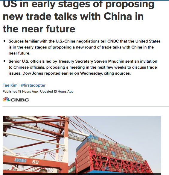 In the latter morning hours, headlines crossed stating that the Trump administration is giving Beijing another chance to try to stave off new tariffs on $200 billion in Chinese exports, asking top officials for a fresh round of trade talks later this month. The invitation from Treasury Secretary Steven Mnuchin comes as some Trump officials said they sense a new vulnerability, and possibly more flexibility, among Chinese officials pressured by U.S. tariffs imposed earlier this year and threats for more to come. Equities rose sharply on the news with the Dow taking the lead. The Dow rose by as much as 150 points on the news before greatly curtailing its gains later in the trading session.