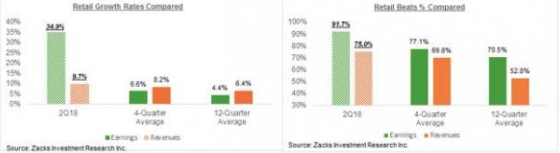 Last week, the retail sector earnings dominated trading focus. This week we have a number of major retailers like Kohl’s (KSS), Target (TGT) and others coming out with Q2 results, but the sector’s results thus far have been very, very good. Please see the chart below.