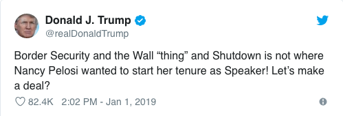 This would mark the first time Trump has met with democratic and republican leaders since the shutdown started Dec. 22. As reported by Politico, Trump tweeted Tuesday afternoon about the possibility of making a deal with incoming House Speaker Nancy Pelosi.
