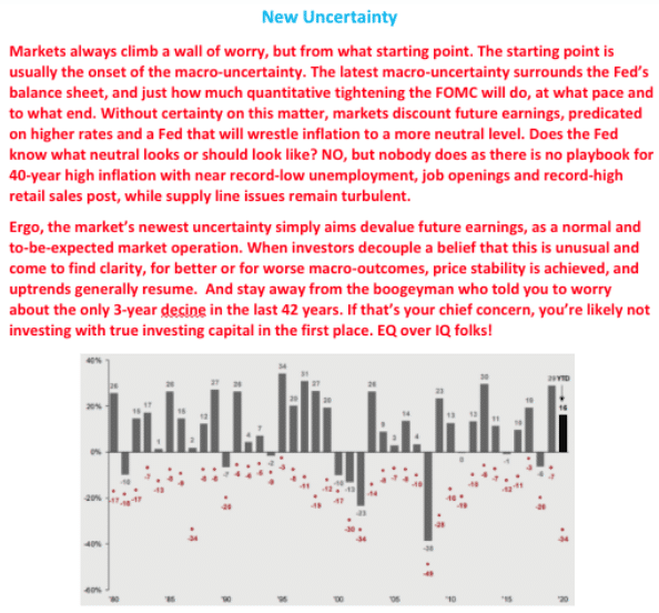 In the relative performance ratio chart of Transports:Utilities above, I’ve added a couple of stochastic metrics to the previously noted RSI. Last week, the RSI was at a bearish 30, dipping further to 24 this past week. What is also demonstrated is the lowest MACD histogram (middle panel) in the last 5-year period. Lastly, the Average True Range (ATR bottom panel) is the highest since the pandemic crash in March 2020. All combined, this identifies extreme risk-off for cyclicals such as Transports and risk-on for defensives such as Utilities. In order for this to persist, I would be of the opinion a more evidential breakdown of economic fundamentals needs to be expressed. That has not taken place to-date, but we also recognize that the economy and the market are 2 different things, with the market being a forward-discounting mechanism. As such, we should continue to monitor those macro-economic fundamentals on a weekly basis. For now, it wouldn’t be altogether surprising to see a relief-reversal of the technical dynamic above in the interim and given the extremes in the stochastic levels at the end of the week.