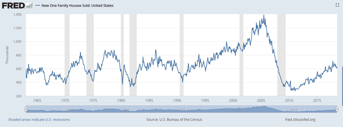 As shown in the chart of New Home sales above, there are always these periods of monthly new home sales slowdowns. As housing prices and interest rates rise, new home buyers extend their search periods and as the overall market adjusts to the higher pricing. On the whole, New Home sales are still higher in 2018 when compared to 2017 and we’ve seen these characteristics in the market many a time before. Nonetheless, it’s something to keep an eye on for future housing reports.