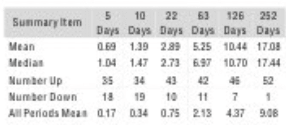 - The 12-month average and median returns are roughly 16% and the positivity rate is 96%.