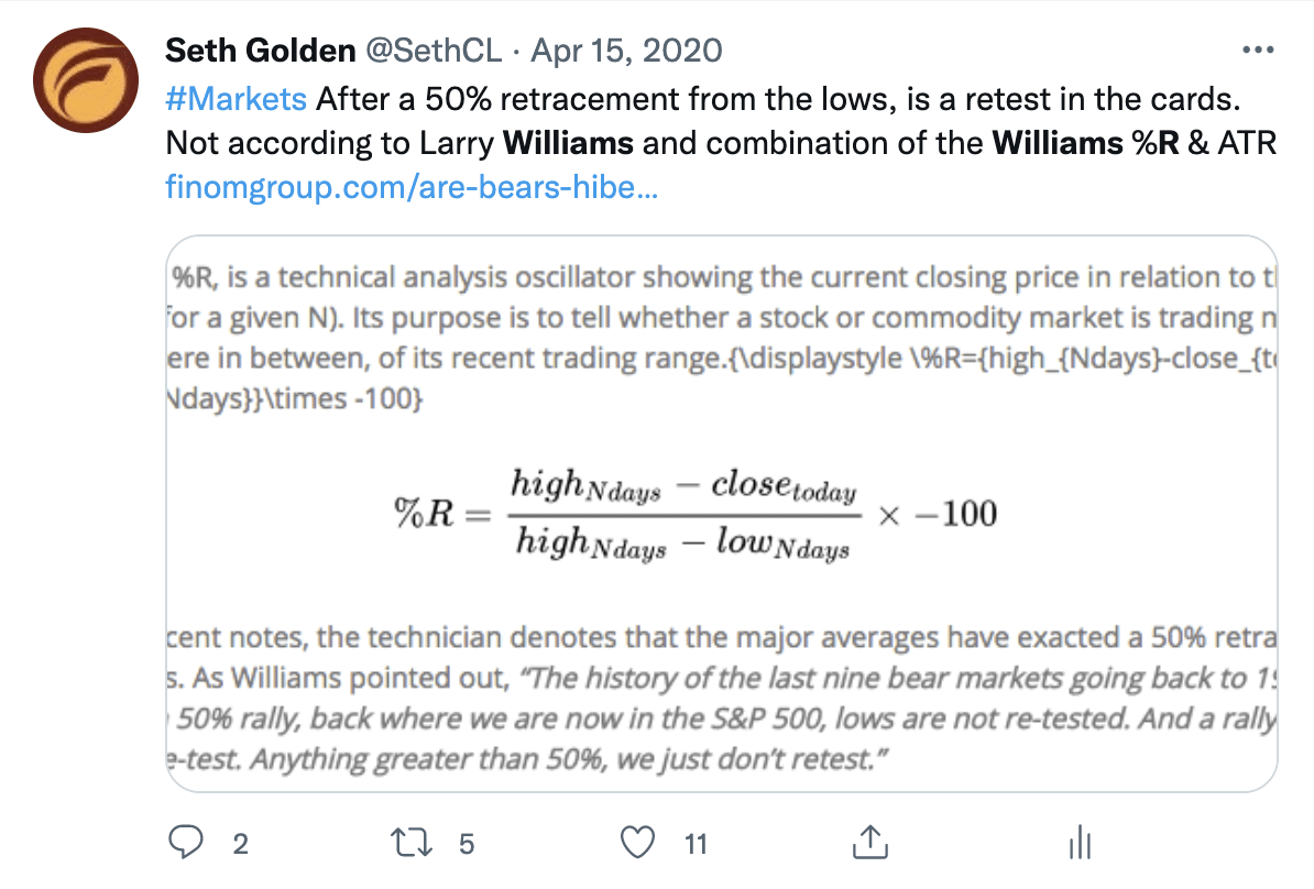 - Since 1972, every bear market that has achieved a 50% retracement off of the lows has signaled a new bull market. Moreover, the lows were never retested.