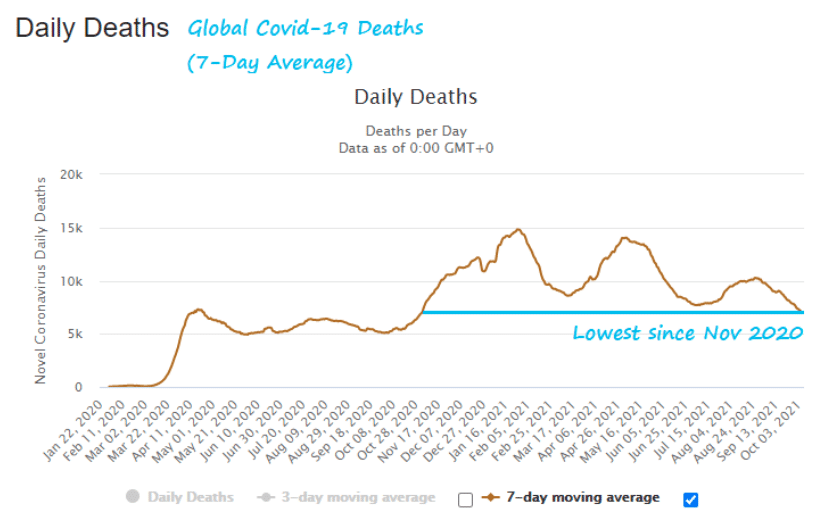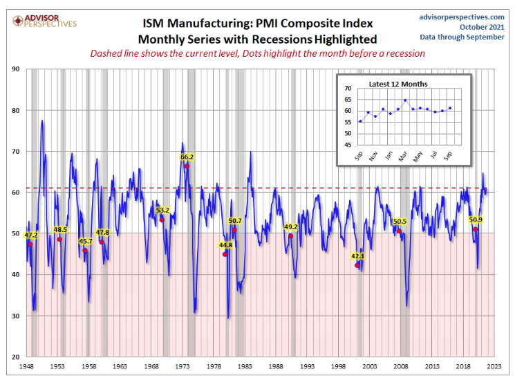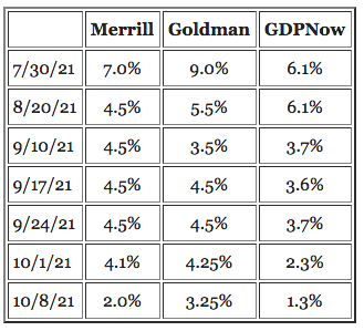 The laws of large numbers always loom, large! It was highly improbable that growing Q2 GDP at 6.7% would find like growth in subsequent quarters based on normalization of economic conditions, which was only expedited by the Delta wave of Covid-related issues. With Covid infections, hospitalizations and deaths all well-off there September highs, don’t be too surprised if the weaker than expected Q3 GDP normalizes at a higher level in Q4 2021.