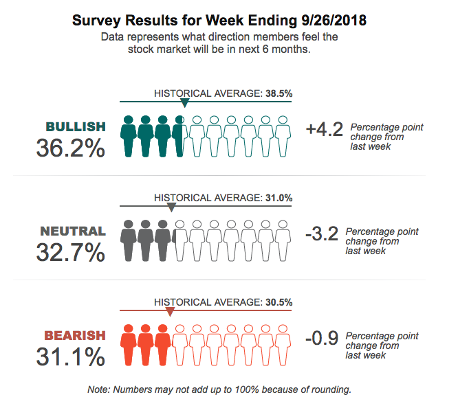 Optimism among individual investors about the short-term direction of the stock market rose but remains below average. The latest AAII Sentiment Survey also shows declines in neutral and bearish sentiment. Bullish sentiment rose 4.2 percentage points to 36.2 percent. Even with the increase, optimism remains below its historical average of 38.5% for the third consecutive week.