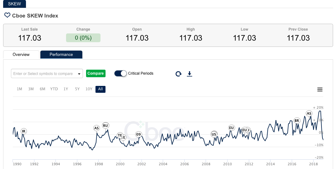 “Tail skew continues to hover at extremely low levels, reflecting a lack of panic. These signals continue to suggest that the path forward is more likely to be a choppy sideways winter (a horizontal, or time based correction) rather than a plunge below key support (a vertical, or price based correction).”