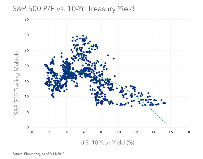 Unfortunately, there is a caveat. Rates and valuations can rise together—to a point. At some point the negative relationship between rates and valuations reasserts itself. In other words, at a certain level higher bond yields create real competition for stocks, particularly dividend stocks, and put downward pressure on multiples.”