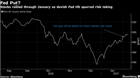 “This decisive dovish shift, to the extent it is sustained, is removing some of the headwinds that caused the 2018 market rout and raises the prospect of 2019 being an asset-reflation year,” JPMorgan strategists led by London-based Nikolaos Panigirtzoglou wrote in the Feb. 6 note.