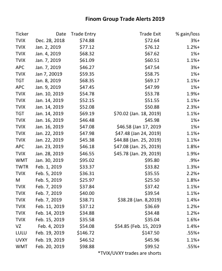 While the screenshot represents after hours Futures trading, February 20 VIX futures contango settled at 4.17%, now presenting a stronger headwind to VIX-ETP price appreciation (UVXY, VXXB, TVIX). As contango has been extremely light and even absent for several months now, Finom Group has simply been scalping TVIX and UVXY on a daily basis. We’ve forgone building a greater core short holding until contango grows above 5% and found with a favorable macro-economic backdrop. We encourage readers and visitors to trade with us with our premium subscription service. (YTD results below)