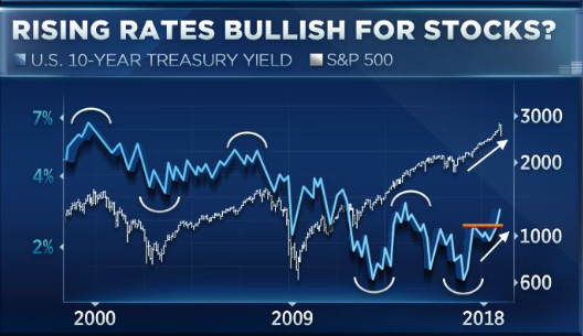 Oppenheimer technician Ari Wald also recently chimed in on the conversation surrounding rising rates and equity prices. He offered that history shows that rising rates are actually bullish for the market.