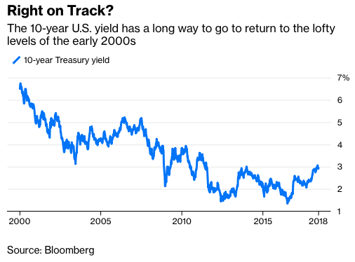 The 10-year Treasury yield would rise to 6 percent by 2020 or 2021. We’re right on track” for that.”