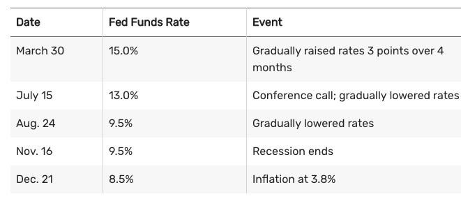 The GDP was -1.8% in 1982, unemployment was 10.8%, and inflation was 6.2%. Data from 1982–2007 is from the Federal Reserve Bank of St. Louis’ discontinued target fed funds rate series.