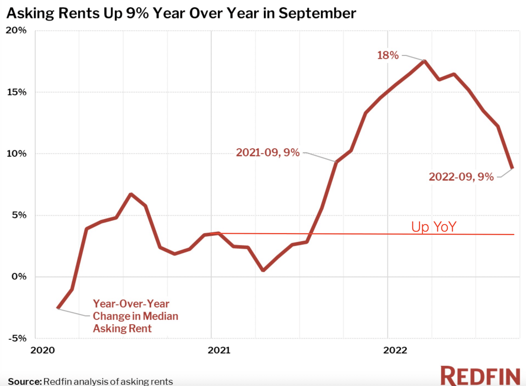 Month-over-month saw rents up 0.8%, after a string of 0.6% to 0.7% prints. The catch is we’ve seen some private measures of rents slowing down considerably, with the Apartment List national rent report showing a 0.2% drop in prices in September for the first time this year, while Redfin shows Rental prices down for the last 3 months.
