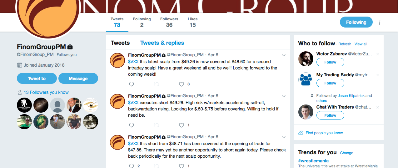 Be it in 2015 or presently, Finom Group continues to trade the volatility presented in the market place and shares trade alerts with subscribers through our private Twitter feed as displayed in the latest tweet alerts last Friday.