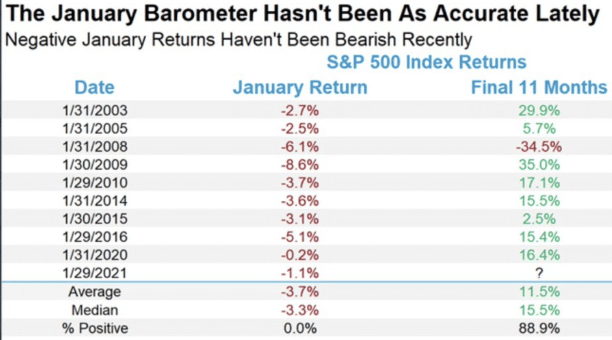 - 3 DOWN, then 3 UP Januarys. If pattern holds, 100% probability January 2023 will be.. UP
