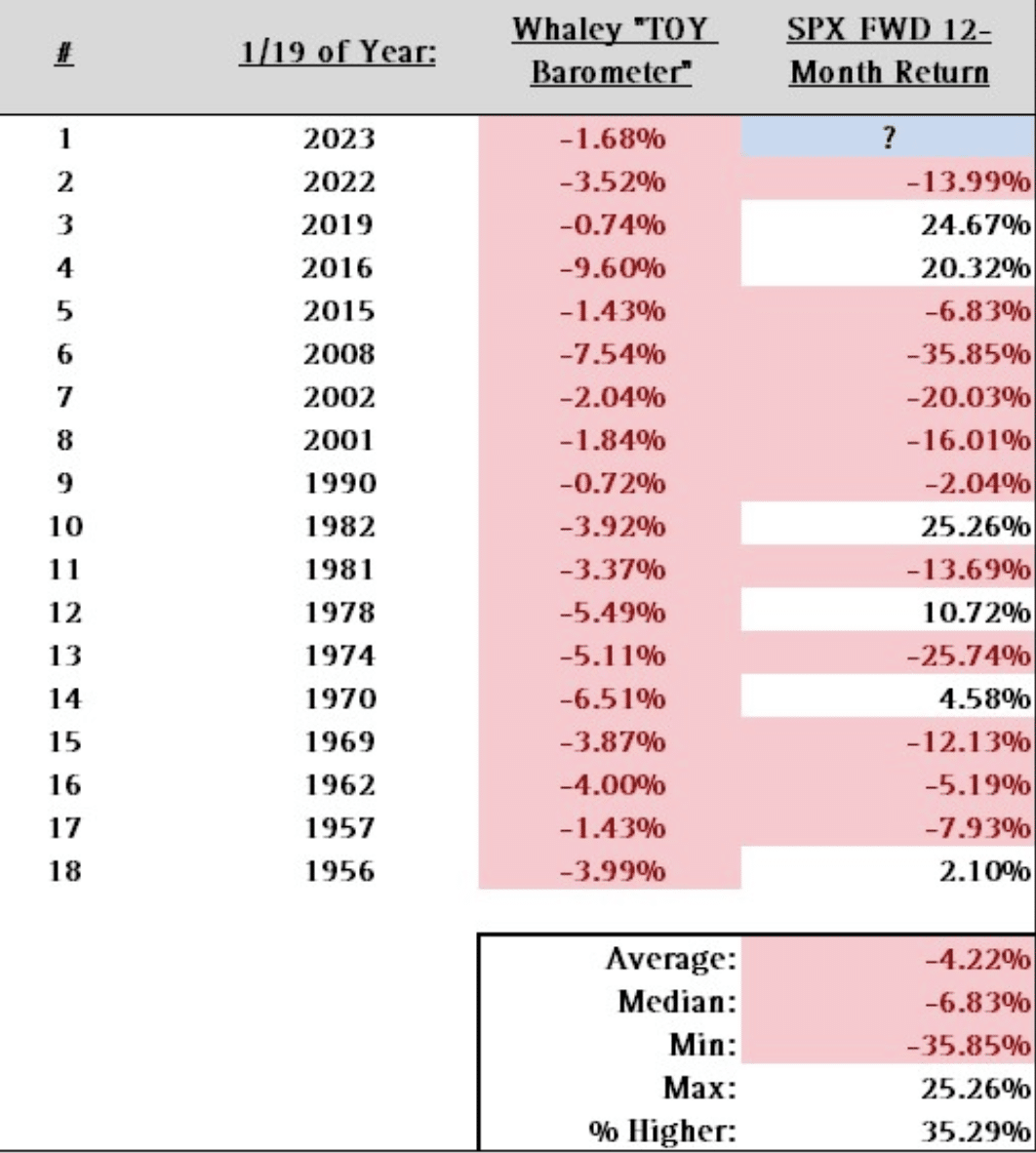 Unfortunately and as outlined in the table below by Steve Deppe, the TOY Barometer was bearish for 2023. From November 21, 2022 through January 19, 2023, the S&P 500 delivered a slightly negative return, which is defined as a Bearish Toy Barometer. It does not guarantee that the market will deliver a negative full-year return, but it does weigh more heavily against favorable market returns.