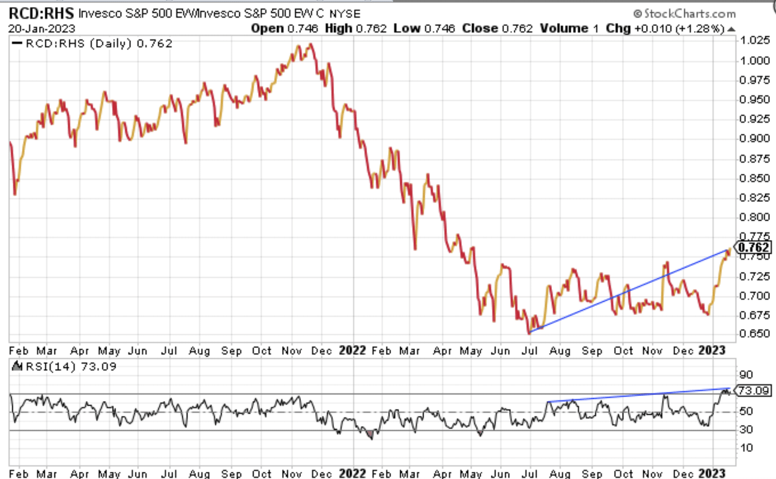 First, always remember that markets are a forward discounting mechanism and Consumer Staples wildly outperformed Consumer Discretionary in 2022. Also remember that having data and appropriately sequencing data is an alpha generator for investors’ performance.
