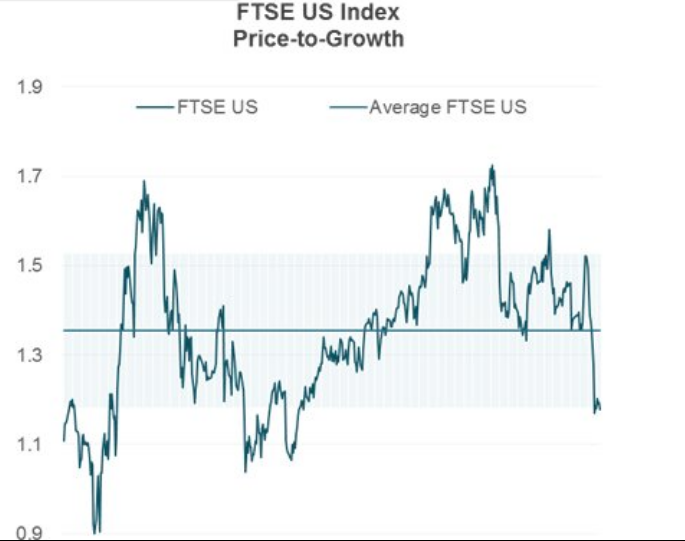 What this means is that the S&P 500 is not only trading one standard deviation below its long-term average of a little more than 1.3, but also at its cheapest level since 2012. That’s a very different consideration than the simplistic historic PE ratio noted above.