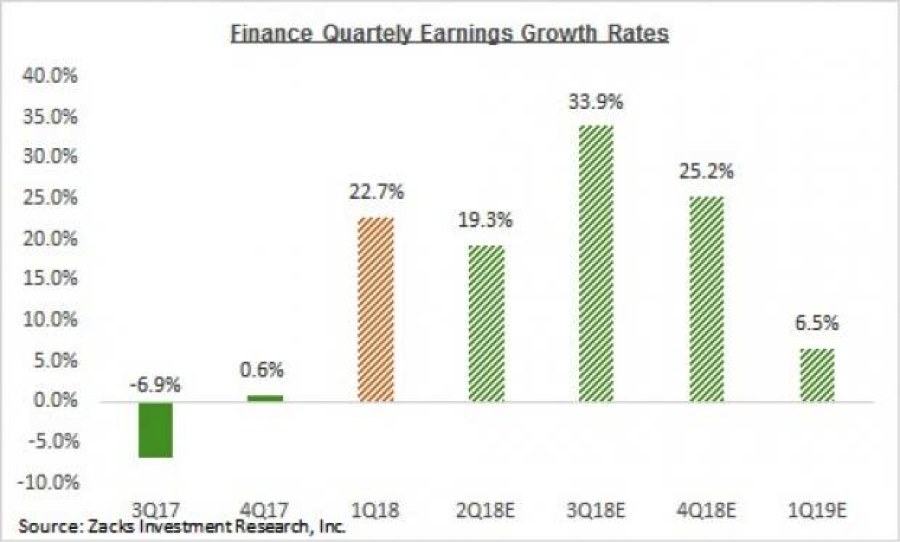 In total, 5 of the 98 financial sector companies have reported Q1 results. Total earnings for these 5 Finance companies are up +20.4% from the same period last year on +6.9% higher revenue growth, with 100% beating EPS estimates and 60% beating revenue estimates. For the quarter as a whole, total Finance sector earnings are expected to be up +22.7% from the same period last year on +4.7% higher revenues. This forecast is a marked improvement from previous quarters and years.
