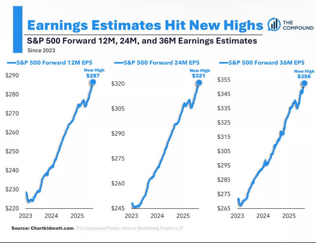 • Breadth and earnings: Breadth remains robust (Global Bull Market A/D at all-time highs) and corporate earnings growth remains in the double digits. These conditions typically align with sustained uptrends, particularly when paired with a Fed pivot.