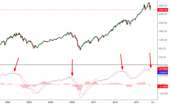 Believe it or not, there’s also more that many will point to as a net negative for the market going forward. Mind you, the market rebounded very close to the February 2,581 closing low and finds equity futures sharply higher on Tuesday. Nonetheless, we can’t deny that the S&P 500 expressed a death cross recently and the MACD(12,26,9) monthly made a bearish cross at the end of November.