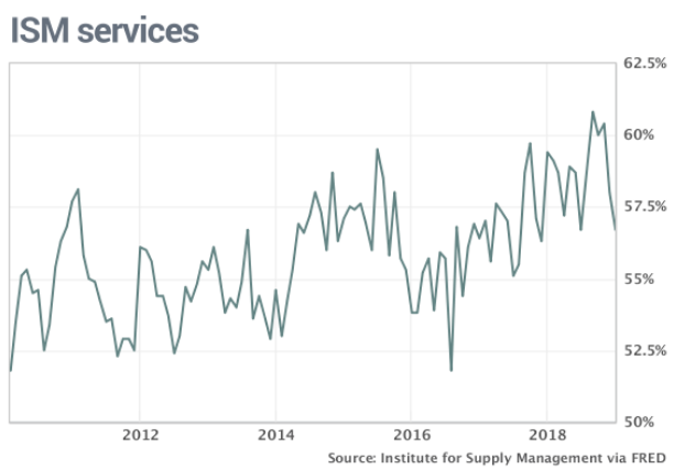 Last, but certainly not least on the economic data front was the latest ISM services reading. Remember, the theme of much of the economic data of late is “slowing growth”, but growth nonetheless. We encourage investors to understand the difference between slowing growth and contraction. In it’s most simplistic definition, slowing growth is still a derivative of growth. We may not be eating increasingly more hamburgers, but we are still eating more hamburgers when compared to last year. So let’s take a look at those ISM numbers…
