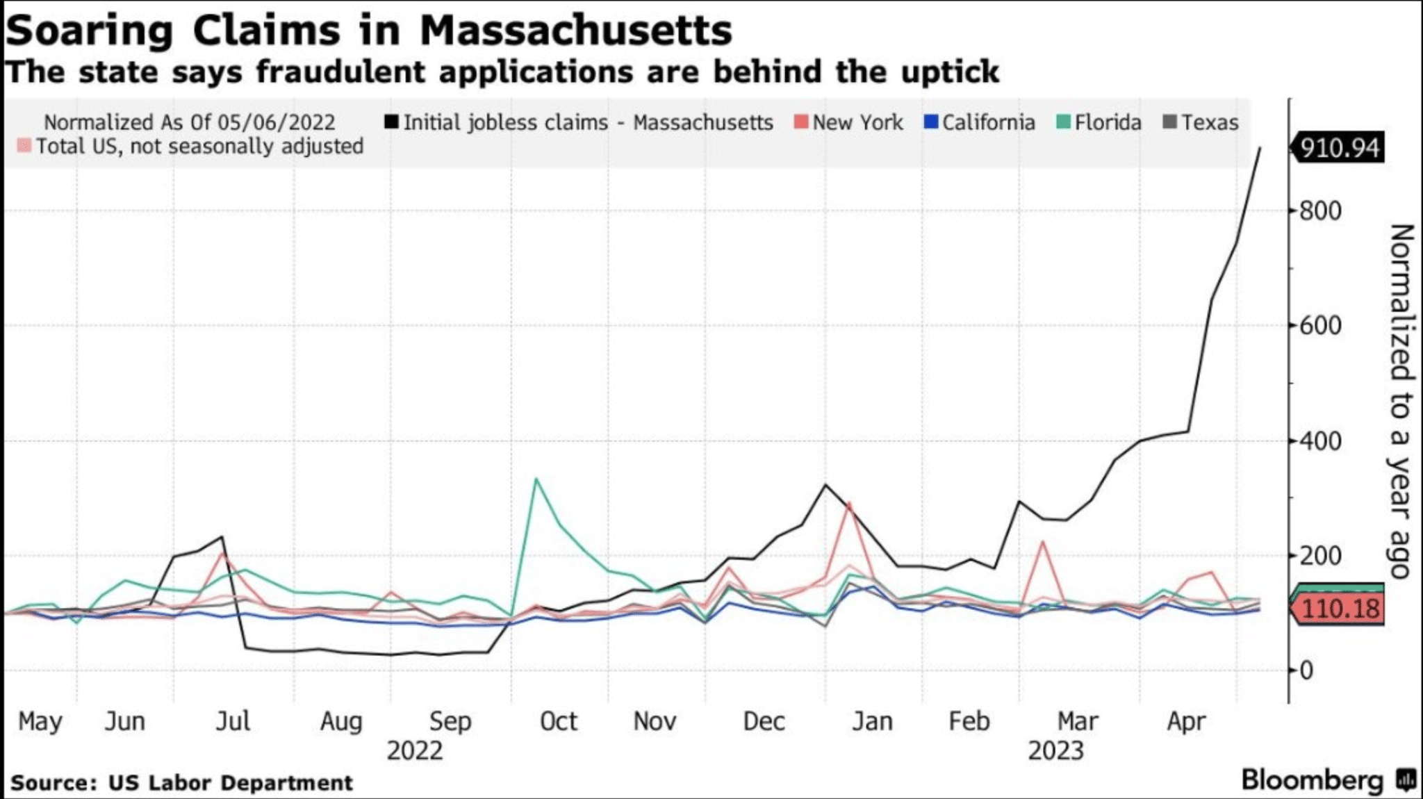 This past week, jobless claims spiked even higher, and the media was back to its usual formatting and outlining recession fears. What we learned, however, through carefully researching the abnormality of the weekly spike in initial jobless claims vs. estimates was that there was an outsized number of fraudulent claims in the state of Massachusetts.