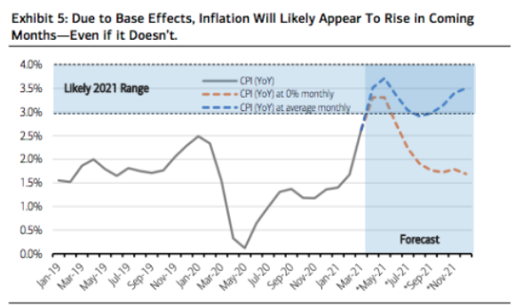 Finom Group is anticipating strong rises in the PPI and CPI readings this coming week. We also believe that is the majority expectation, and as such, surges in prices should be recognized as commonplace and part of the typical “base effect” previously discussed. We should expect the base effects of Consumer Price inflation over the coming 3-5 month period to show up in CPI. The chart below identifies the clear inverse from the 2020 trough (negative CPI) in 2021 forecast.