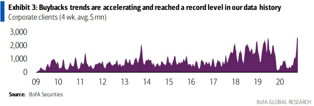 Spending will continue to remain strong for a variety of reasons: Relief, Revenge and Reunion spending 1. Relief spending in the form of dining out or returning to in-person shopping; 2. Revenge spending, or taking the time off employees never took in 2020 for vacations and 3. Reunion spending; spending on planes and trains to see friends and family. When combined with CAPEX spending that we anticipate/expect in 2021 and before even considering the healthy ramp-up in corporate buybacks, we continue to see the greater probability of higher market prices in 2021, as earnings move higher into 2022.