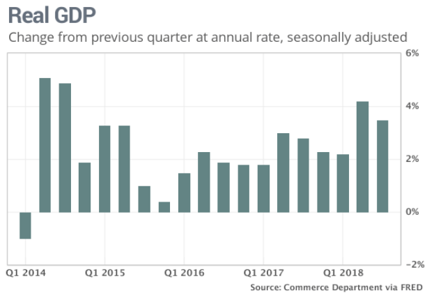 Now let’s get back to the GDP data released last week. As noted previously, GDP came in at 3.5% for the Q3 2018 period, a deceleration that is typical from Q2 periods.