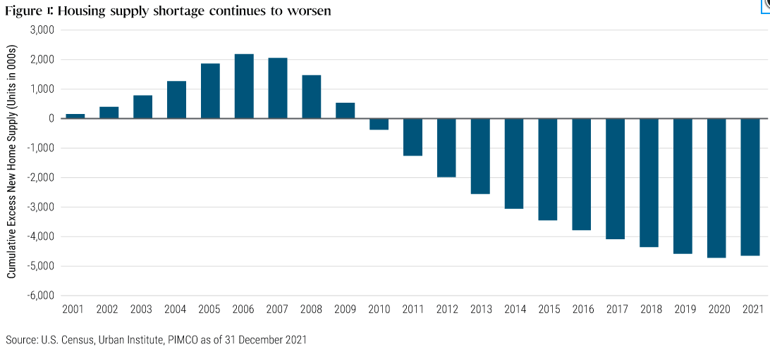 Yet, in our view, this cycle is different. We believe the single-family housing market is on much stronger footing today versus the pre-GFC period. Every entity involved in housing, including homebuilders, lenders, government-sponsored entities (GSE), investors, and borrowers, was in some way scarred by the financial crisis and has tended to behave more conservatively ever since. As a result, U.S. housing should remain supported over the long term by two pillars: a secular shortage of housing units and resilient, delevered borrowers.