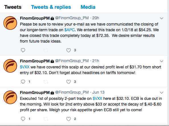 Either way Finom Group’s chief market strategist Seth Golden always suggests to trade what the market gives one to trade. Golden’s outlook for the current trading week was one that suggested bouts of volatility and thus far that’s exactly what we’ve seen: Minor blips in the VIX that ultimately subsided. Such a blip may present itself today, once again. Wednesday’s blip in the VIX turned into another trading opportunity that was delivered to subscribers as depicted in Finom Group’s real time, private Twitter feed.