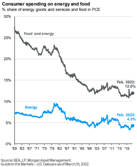 So while indeed, prices have risen for these goods, consumption has fallen for such goods, rendering the impact muted on the household balance sheet. (chart below)