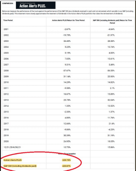 As the tracked data analyzes, for every $1 invested in the Jim Cramer Action Alerts Plus recommended investment, an investor would have earned half of what they would have earned if they invested in the S&P 500 index ETF (SPY). That’s right, for all the pomp and circumstance associated with the famed Jim Cramer, his Action Alerts PLUS service massively underperforms the S&P 500 on an annualized basis and since inception.
