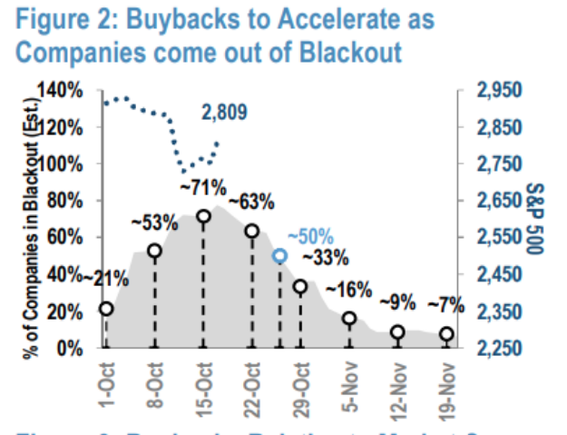 “With the largest one-way buyer returning in size to the market post earnings, we expect liquidity to improve and equities to move higher,” wrote equity strategists led by Dubravko Lakos-Bujas, in a Thursday note, referring to buybacks.