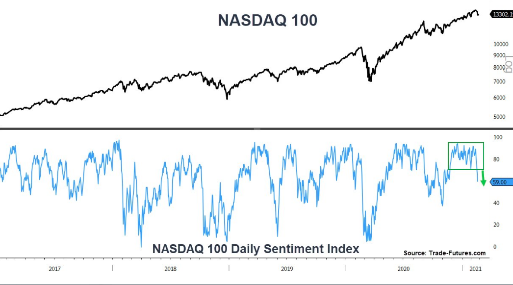 The Nasdaq Daily Sentiment Index fell below 60 for the first time in more than 3 months toward the end of February. Historically, long streaks of elevated sentiment always led to more gains for the NASDAQ over the next 3 months.