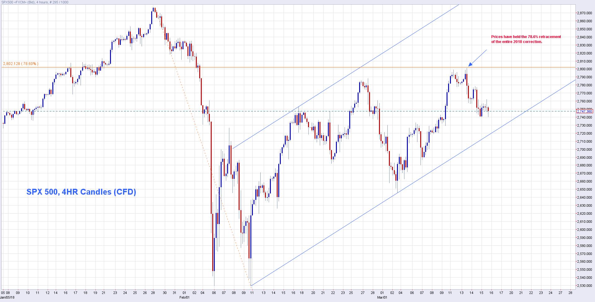 Between uncertainty surrounding the White House and the number of times the Fed will hike in 2018, the major averages have failed to recapture all-time highs. The S&P 500 is still up 2.9% in 2018, but remains 4.2% below its all-time closing high set on Jan. 26. Last week the S&P 500 closed with weekly losses on Friday. In speaking to the S&P 500’s attempt to recover from its recent February correction of greater than 10%, Finom Group’s Technical Analyst, Edward Cordoba, offered his following analysis: