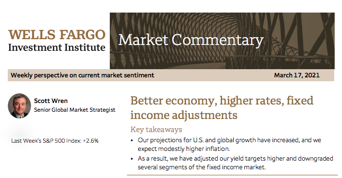 Over the last couple of weeks, we have made adjustments to guidance and targets in a number of different asset classes including equities and fixed income. We meaningfully increased our expectations for economic growth here at home and also adjusted upward projections for multiple global regions and overall world growth. That was the foundation on which the resulting adjustments to our recommendations and year-end targets were built. Our targets and earnings projections for the major domestic equity indexes rose along with our expectations on where the yield on the 10-year Treasury note might be as the calendar gets ready to roll over into 2022. We also increased our expectation on where the commodities complex, as gauged by the Bloomberg Commodity Index (BCOM), would finish out the year.