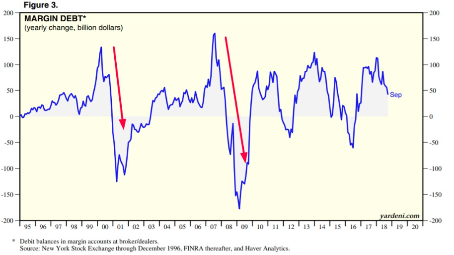 Moreover, we can also look at brokerage margin debt to see what investors are or have been doing with respect to the overall market performance and how that lends itself to volatility in the market. What is margin debt? Margin debt is debt a brokerage customer takes on by trading on margin. The portion the investors borrow is known as margin debt; the portion they fund themselves is the margin, or equity (not to be confused with the securities the customer is trading, which may themselves be equities).