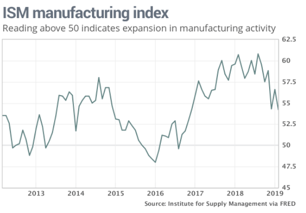 The Institute for Supply Management said its survey of top manufacturing executives fell to 54.2% last month from 56.6% in January. Economists surveyed by MarketWatch had forecast the index to total 55.5%.